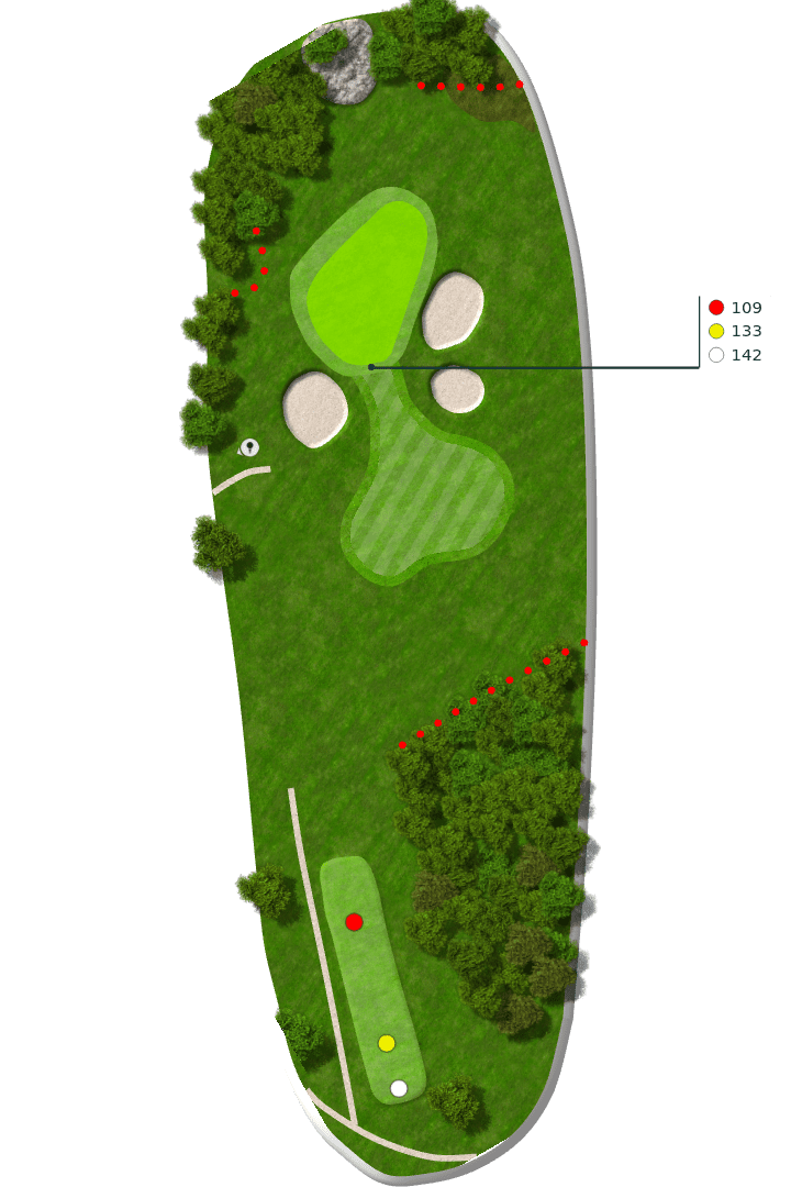 Men man får passa sig för den lilla dammen till vänster. Mitt på green är en bra plats att hamna på.